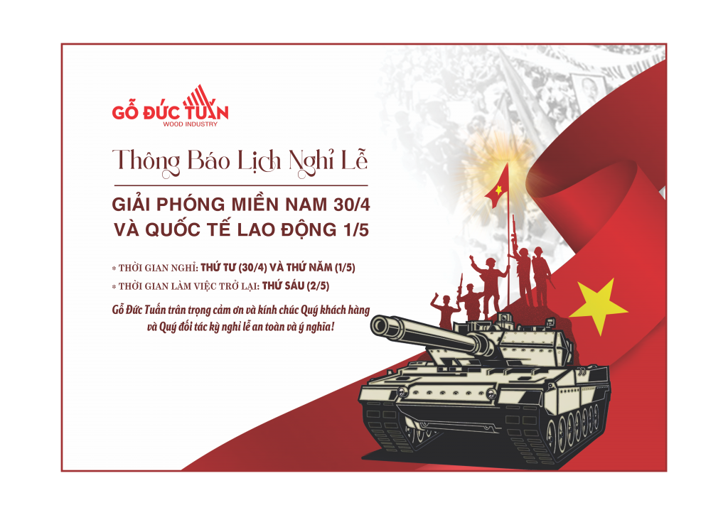 LỊCH NGHỈ TẾT NGUYÊN ĐÁN NĂM 2026 Kính gửi Quý Khách Hàng và Quý Đối Tác Gỗ Đức Tuấn xin trân trọng thông báo...